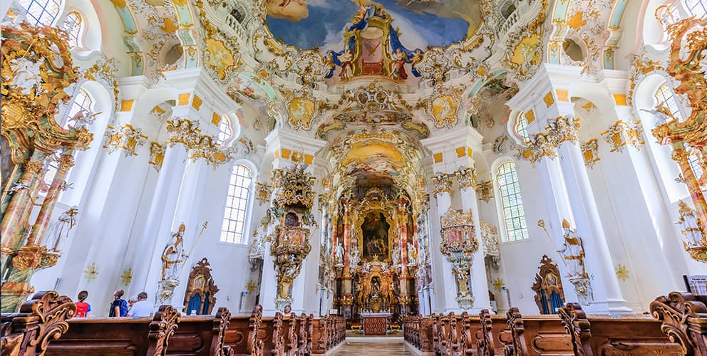 の指揮のもと改修工事が行われ、華麗で色彩豊かな教会が完成した。