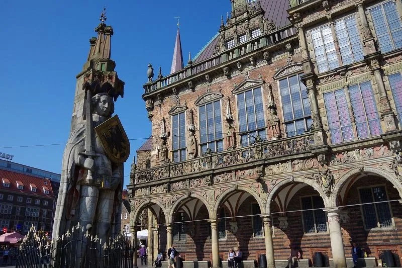 ブレーメンのマルクト広場の市庁舎とローラント像