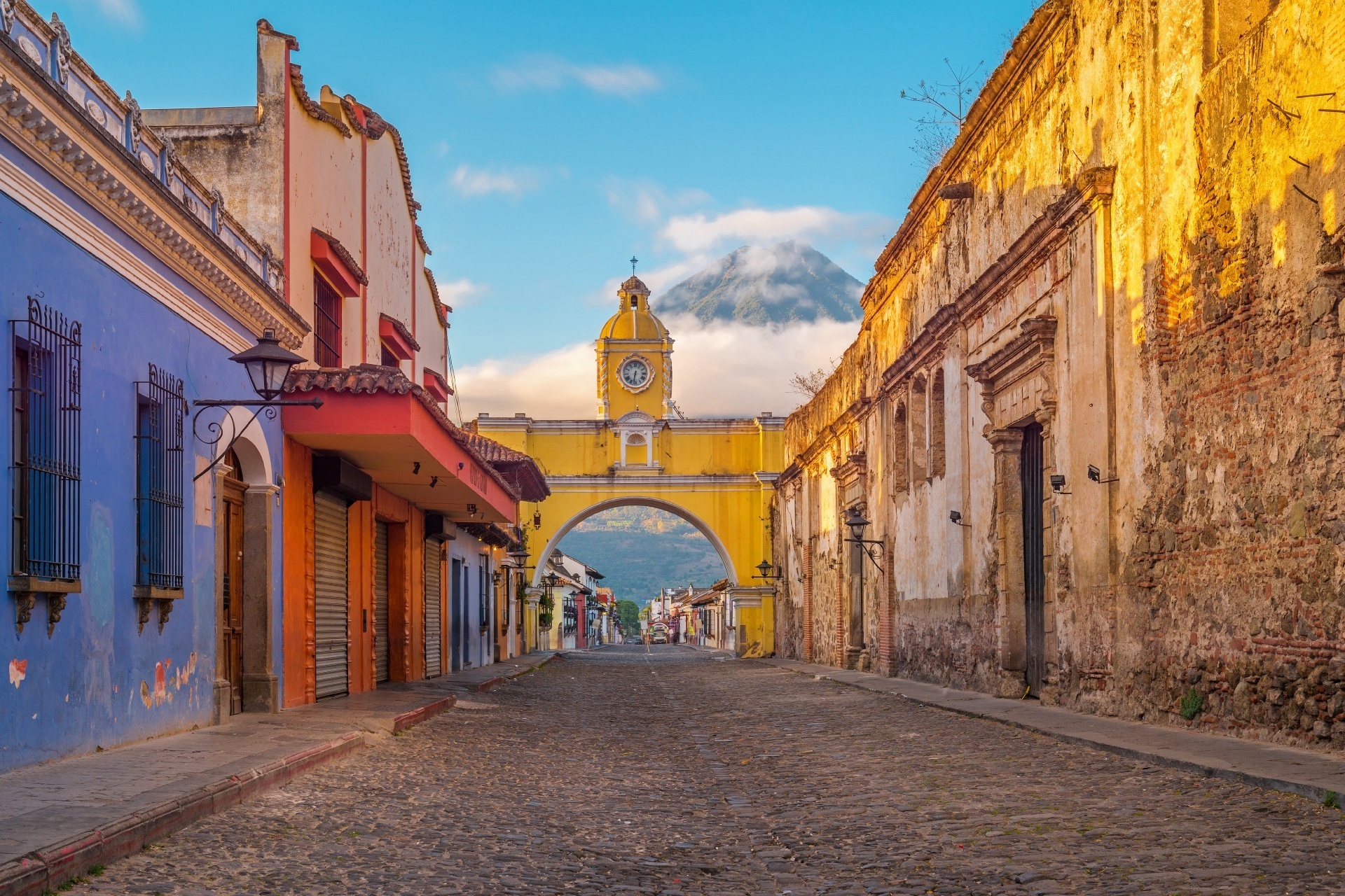 グアテマラ南部の高地に位置する旧首都は、16世紀に建設された