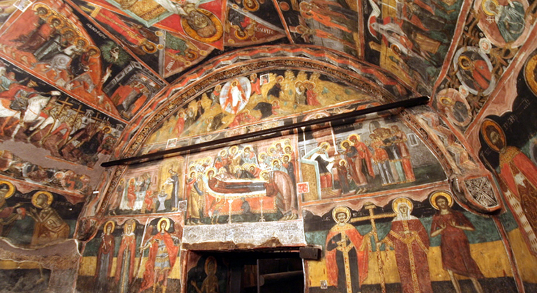 聖パンティレイモン教会のフレスコ画には89の場面に240人もの人物が登場している。