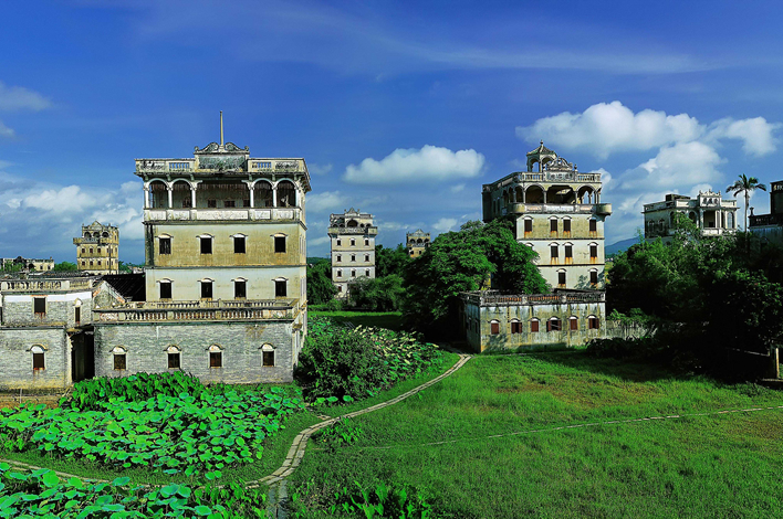 家屋、避難所、見張り塔などの役割をもつ5階建てほど、盗賊の襲来や河川の洪水対策の多層建造物。
